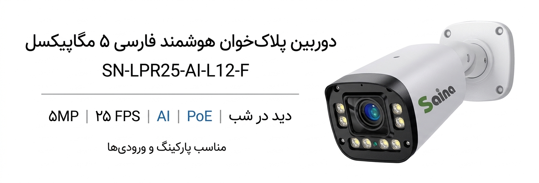 دوربین پلاکخوان هوشمند فارسی 5 مگاپیکسل 25 فریم مدل SN-LPR25-AI-L12-F